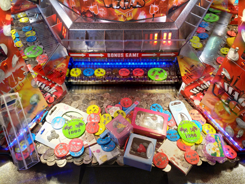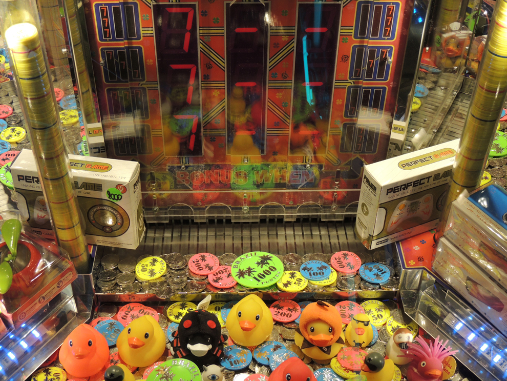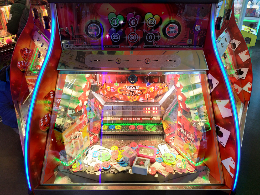 De 'Pushers', ook wel 'jetonspelen' of 'muntspelen' genoemd, zijn een van de belangrijkste amusementspelen bij Lunapark Brazil. Bij het zien van deze speelautomaten waant u zich meteen even in Las Vegas, bekend van zijn feeërieke casino's en imposante gokhallen. |